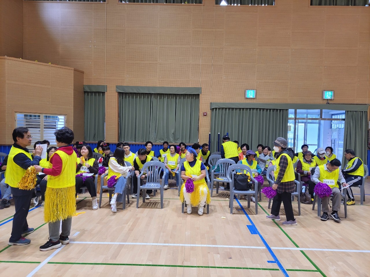 180명 정 도가 참석을 했고 모두가 행복 해 했다. 중학교 체육관이 운동 하기가