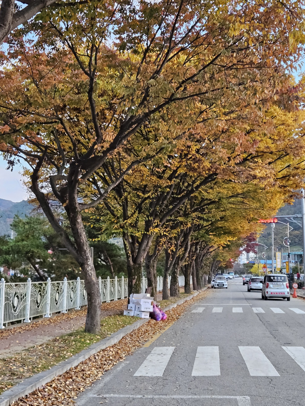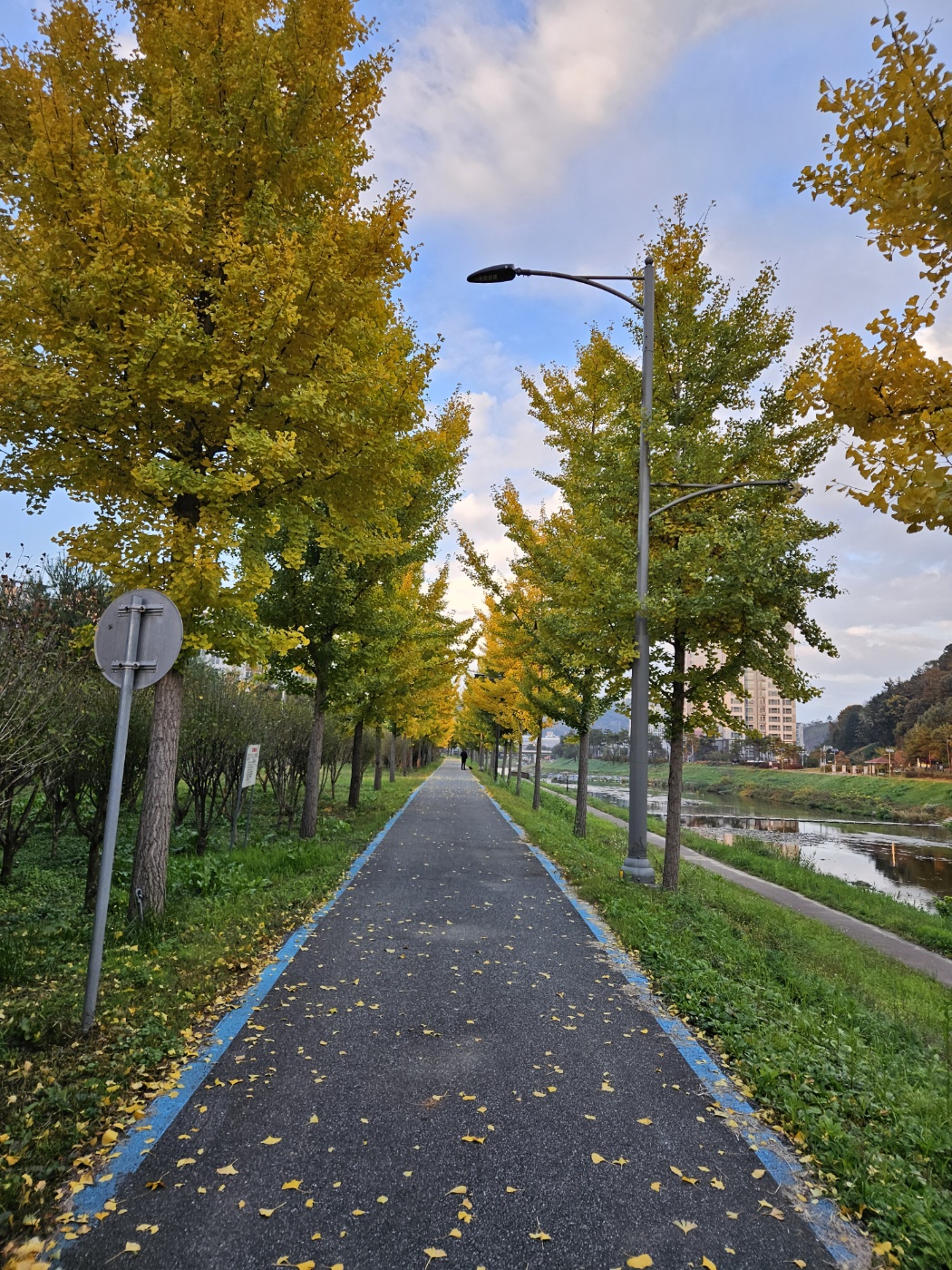 운동을 나갔다. 요즘 은행 나무에 단풍이 노랗게 들어 예쁘다.