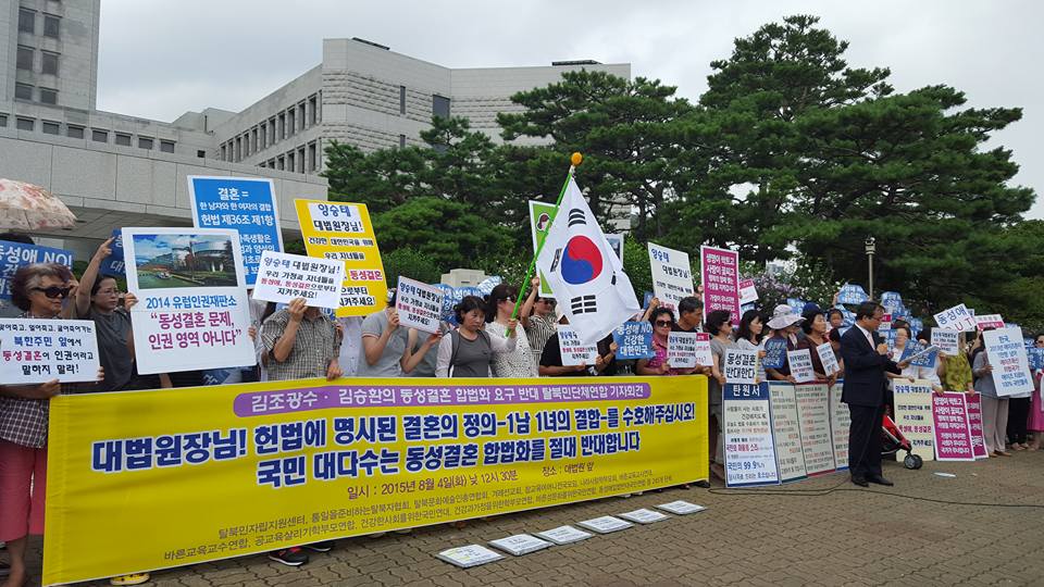 오늘 도저히 참을수 없어 대법원 앞에서 탈북자 단체장들과 함께 동성애 합법화를 반대하는 시위를 하고 5천명 탈북자들과 국민들의 서명과 탄원서를 양승오대법원장에게 전달 했습니다.