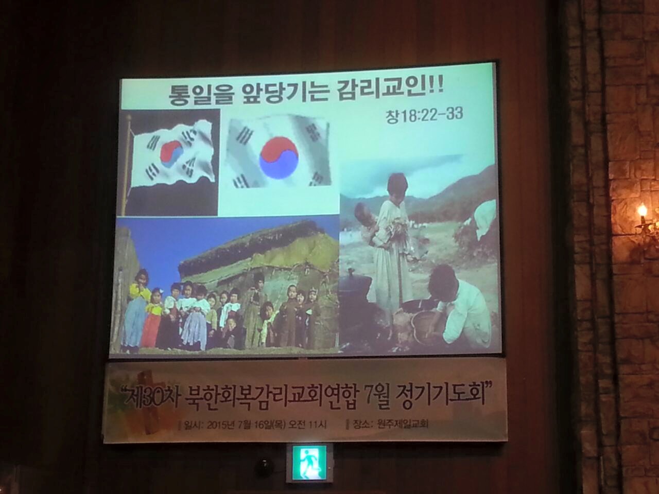 일제에게 빼앗긴 나라를 찾는 독립에 앞장섰던 감리교회 믿음의 선진들의 순교의 정신 이어받아 감리교회가 이 민족의 통일을 위하여 일어나게 하소서.