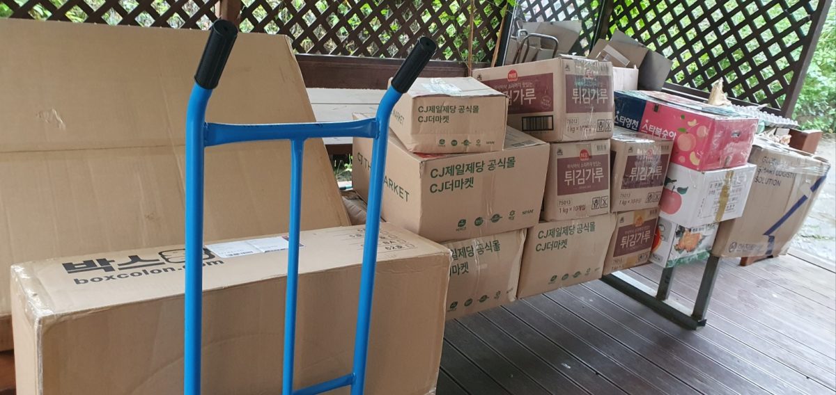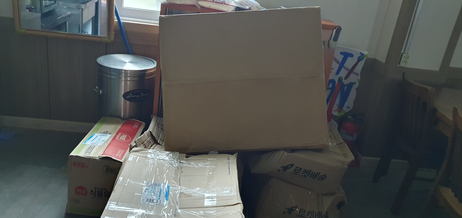 전달하자고 해서 물품을 준비하는데 택배로 신정 했더니 오늘 40개 택배가오고
