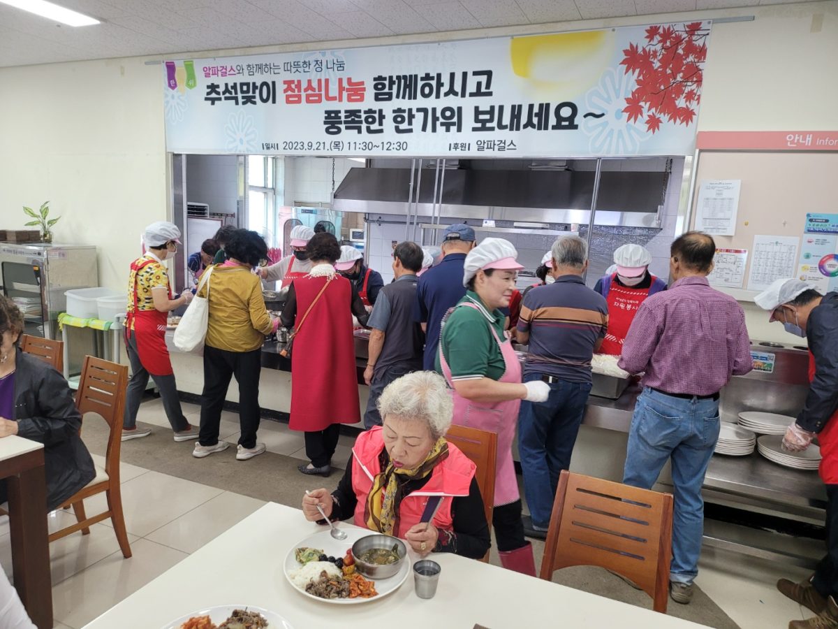 오늘은 노인 복지관에서 추석을 맞이하여 무료 점심 봉사의 날이다.