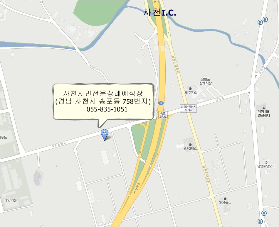(경남 사천시 송포동 758번지 사천시민전문장례식장, 사천시 송포농동단지 입구)
