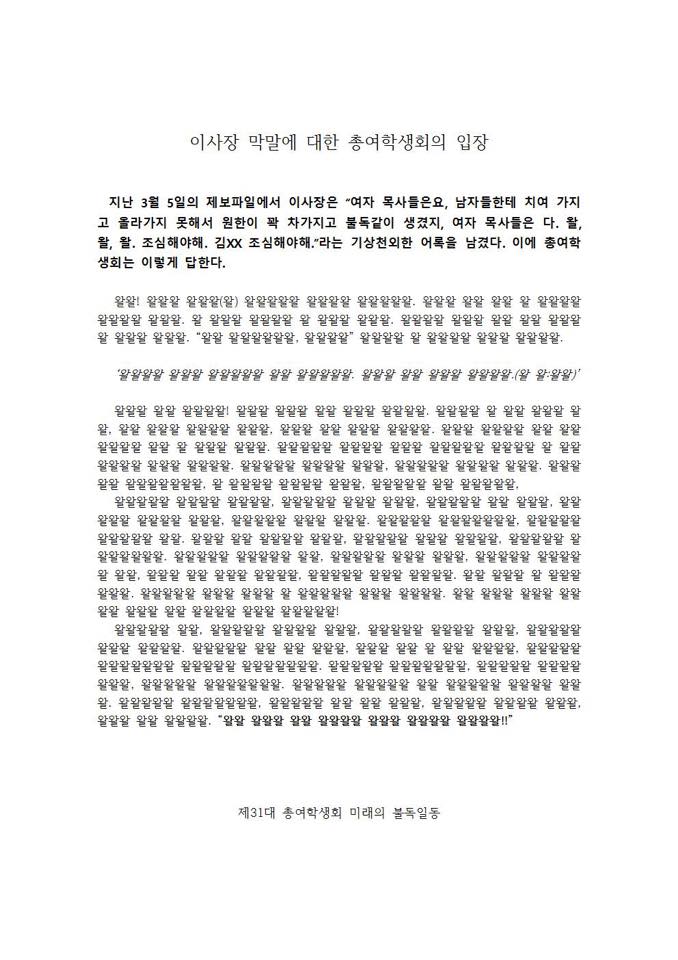 이에 맞서서 총여학생회에서 성명서를 냈는데....그내용이....왈왈왈이다^^