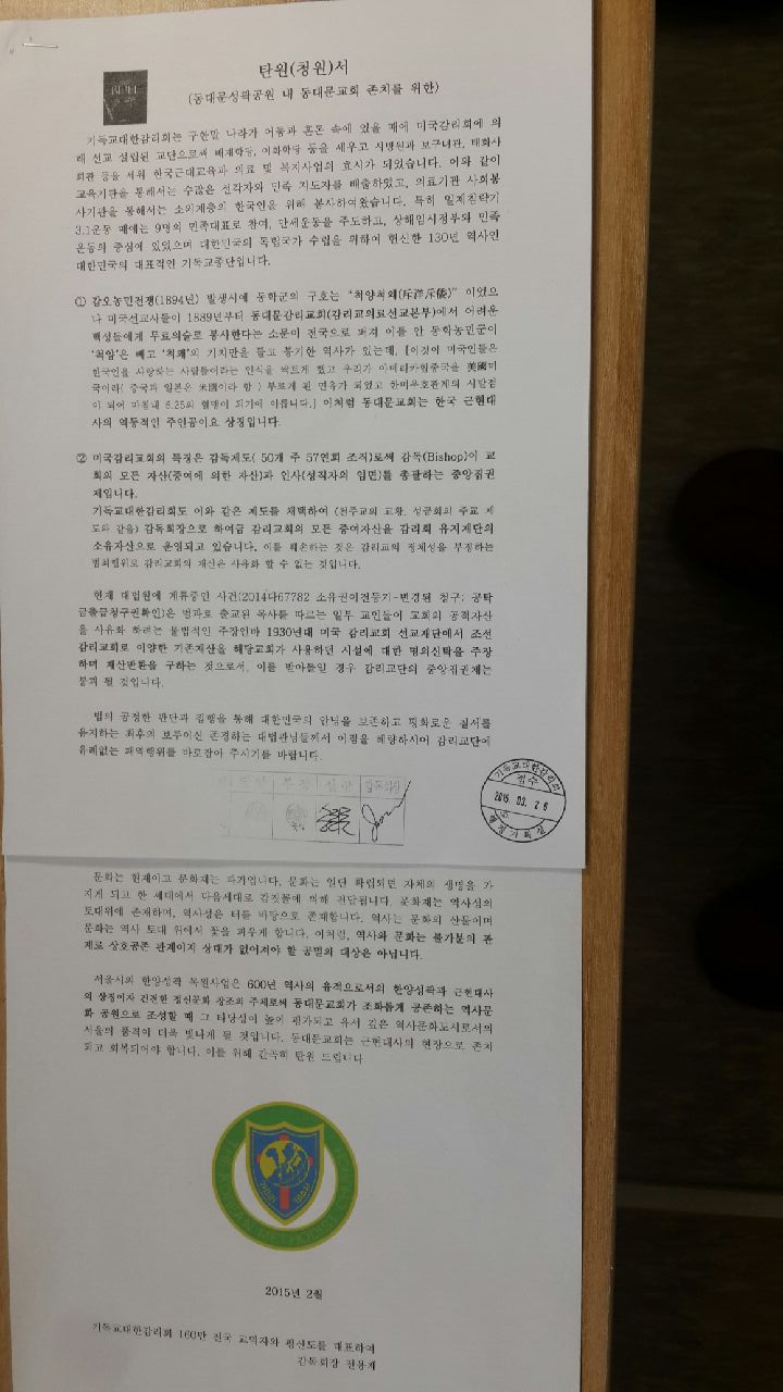 (동대문성곽공원 내 동대문교회 존치를 위한)