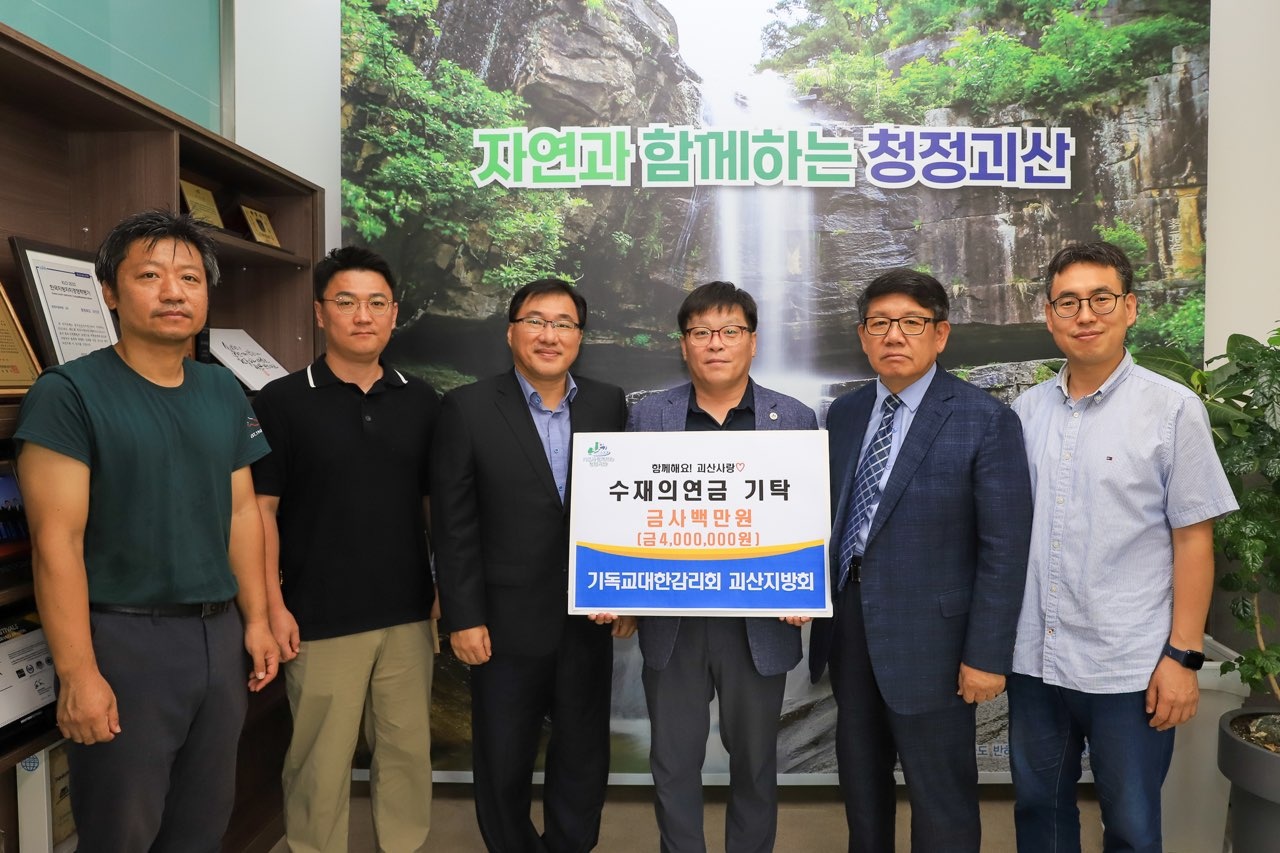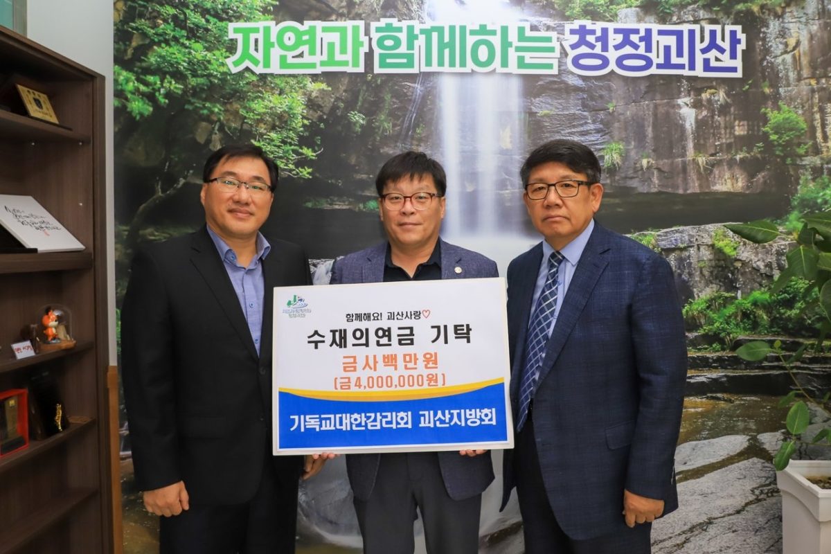 오늘은 우리 기독교 대한 감리회 괴산지방 이름으로 수재의연금 400만원을 괴산군에