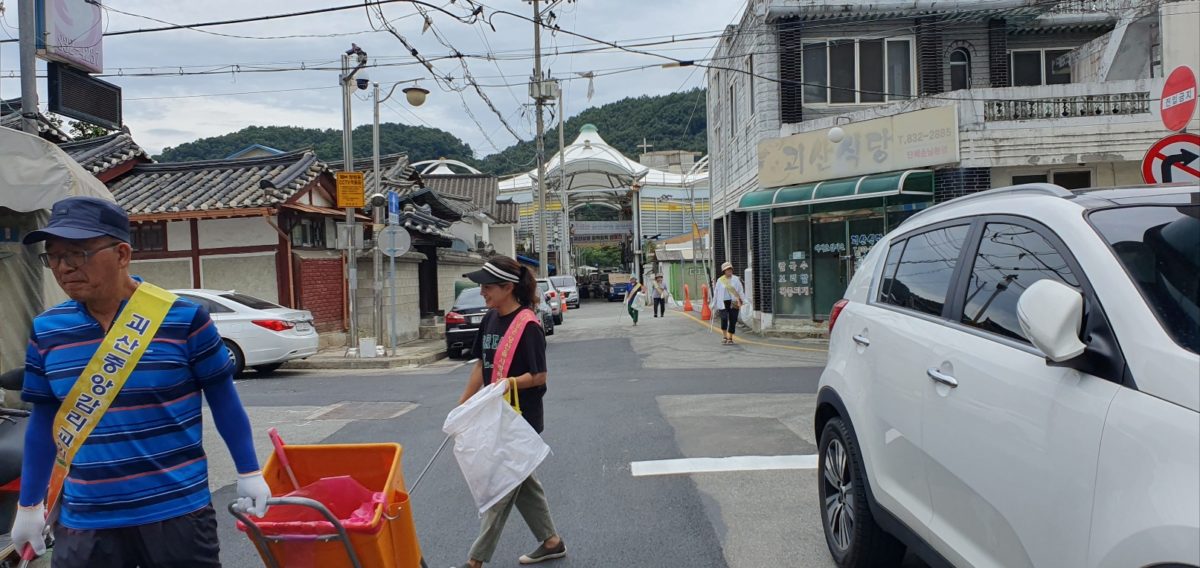 박카스와 복숭아를 대접 했다. 괴산의 거리가 매주 청소하니 깨끗함을 느낀다.