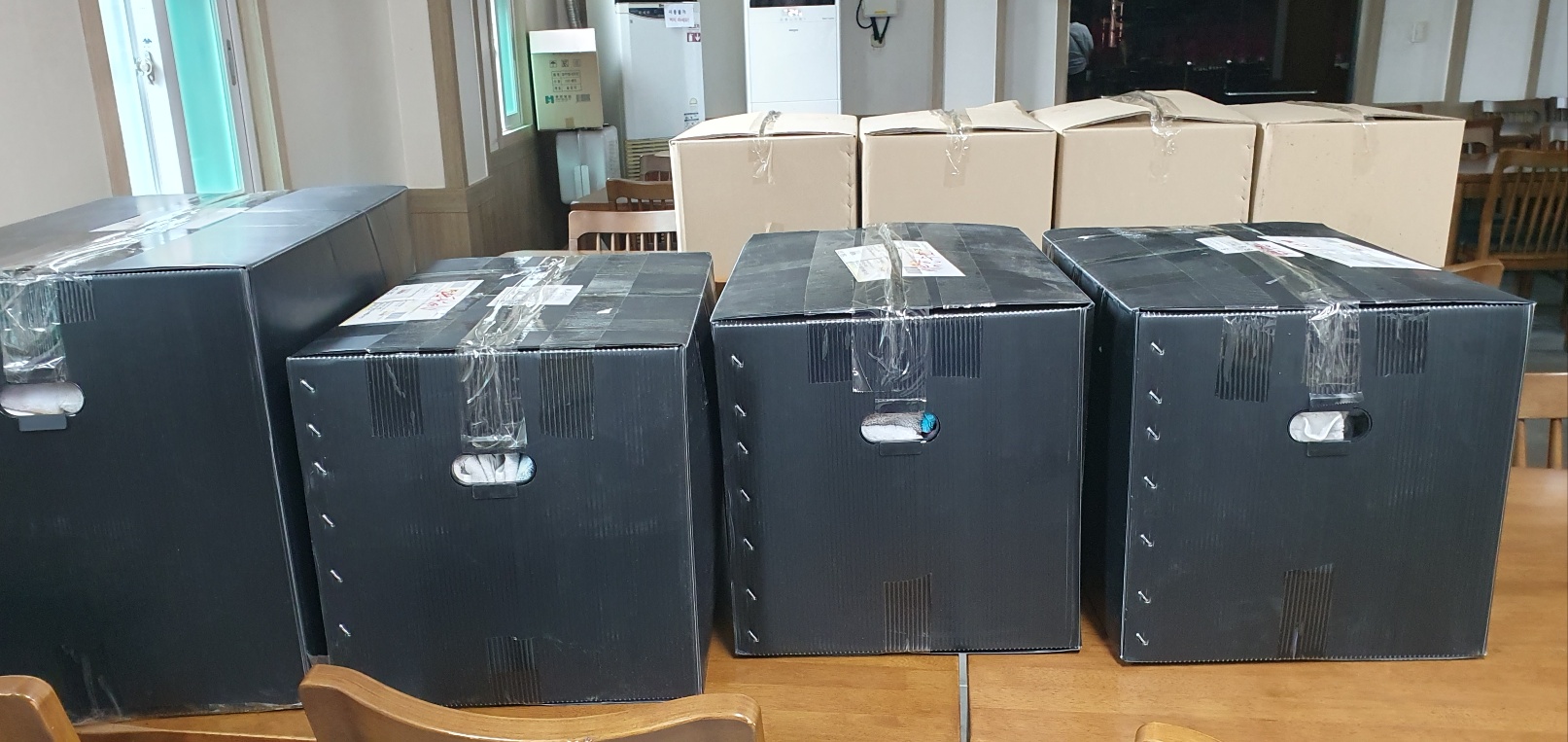 그리고 다시 교회로 모여서 수건 정리를 했다.