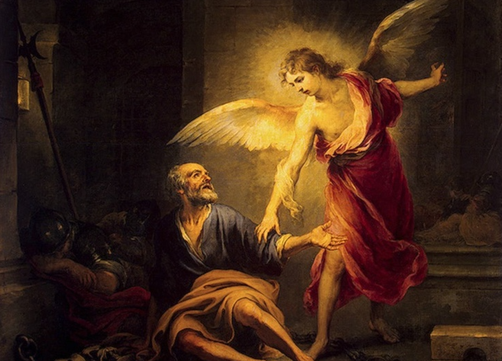 천사가 나타나 잠을 자던 베드로를 깨우고