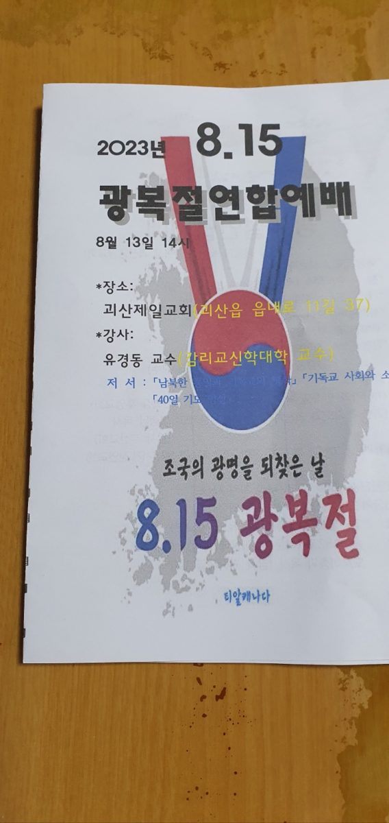 오늘은 광복절 78주년 기념 예배로 괴산군 기독교 연합회가 연합하여