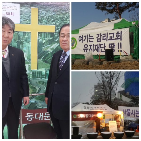 동대문교회는 127년 동안 이어온 교인 1,000여 명이 산산조각이 났고 이에 동대문교회 남은자(지킴이)들은 하나님께 이 억울한 사실에 밤낮으로 촛불집회를 이어오고 있습니다. 이제 불확지 공탁만 해논 상태에서 교회를 무참히 파괴한 책임을 지기는 커녕 천막교회까지 철거를 강요하는 것은 민주국가(법치)에서 있을 수 없는 일입니다. 하나님은 분명 살아 계신데 이런 무지한 행동을 어찌 감당하려고 어리석은 짓을 감행 하는 것입니까?