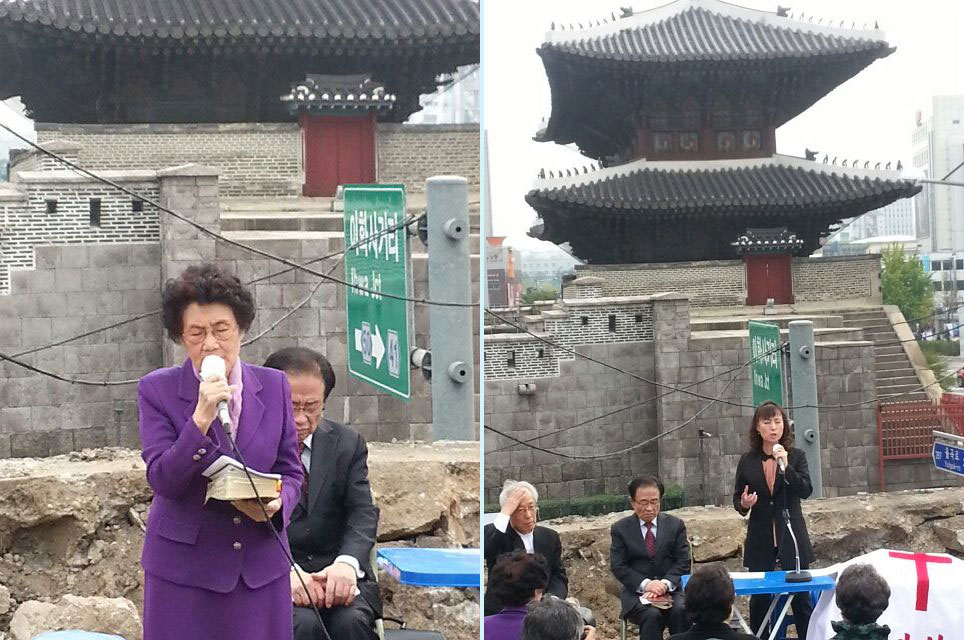 이날 동대문을 바라보며 노천에서 하늘을 향하여 조촐하게 드려지는 성만찬의 예배는 문세광 원로목사의 사회와 동대문교회의 산 증인인 88세로 1927년에 태어나시어 일평생을 동대문교회의 역사와 함께하여 오신 최애도장로 눈물의 기도는 참여한 모든 이들의 심금을 울리었고, 동대문교회에서 16세에 주님을 영접하고 1923년 동대문교회 인근에서 일본경찰과 헌병 1000여명과 단독으로 시가전을 벌이다 장열히 순국하신 김상옥의사의 손녀 김영실 교수의 특송, 조환기 원로목사의 설교말씀으로 이어졌다.