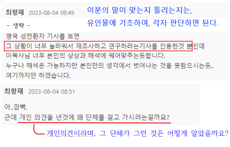“그 상황이 너무 놀라워서 재조사하고 연구하라는 기사를 인용한것 뿐”이라는데..