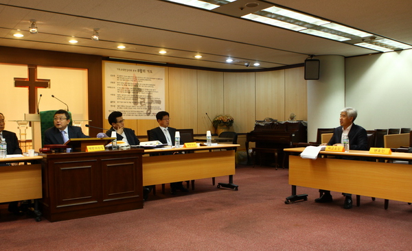 ▲ 총회재판 이후 희의중인 총회재판위원회 재판1반 (구자경 반장)