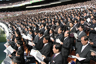 한국기독교총연합회와 한국기독교교회협의회 교인들이 2006년 서울 잠실 올림픽주경기장에서 첫 공동 부활절연합예배 중 찬송가를 부르고 있다. 크리스천투데이 제공