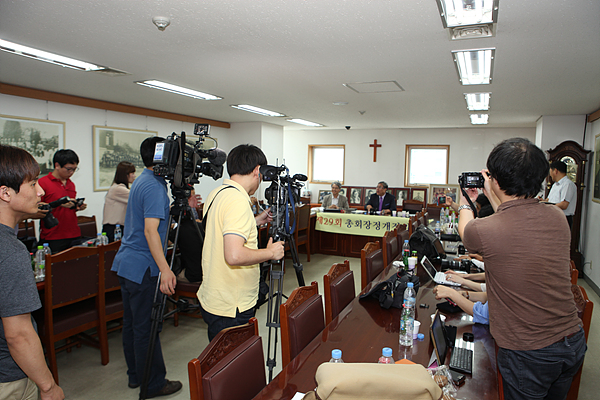 ▲ 장정개정위원회 기자브리핑이 열린 종교교회 회의실은 각계언론사의 취재열기로 뜨거웠다.