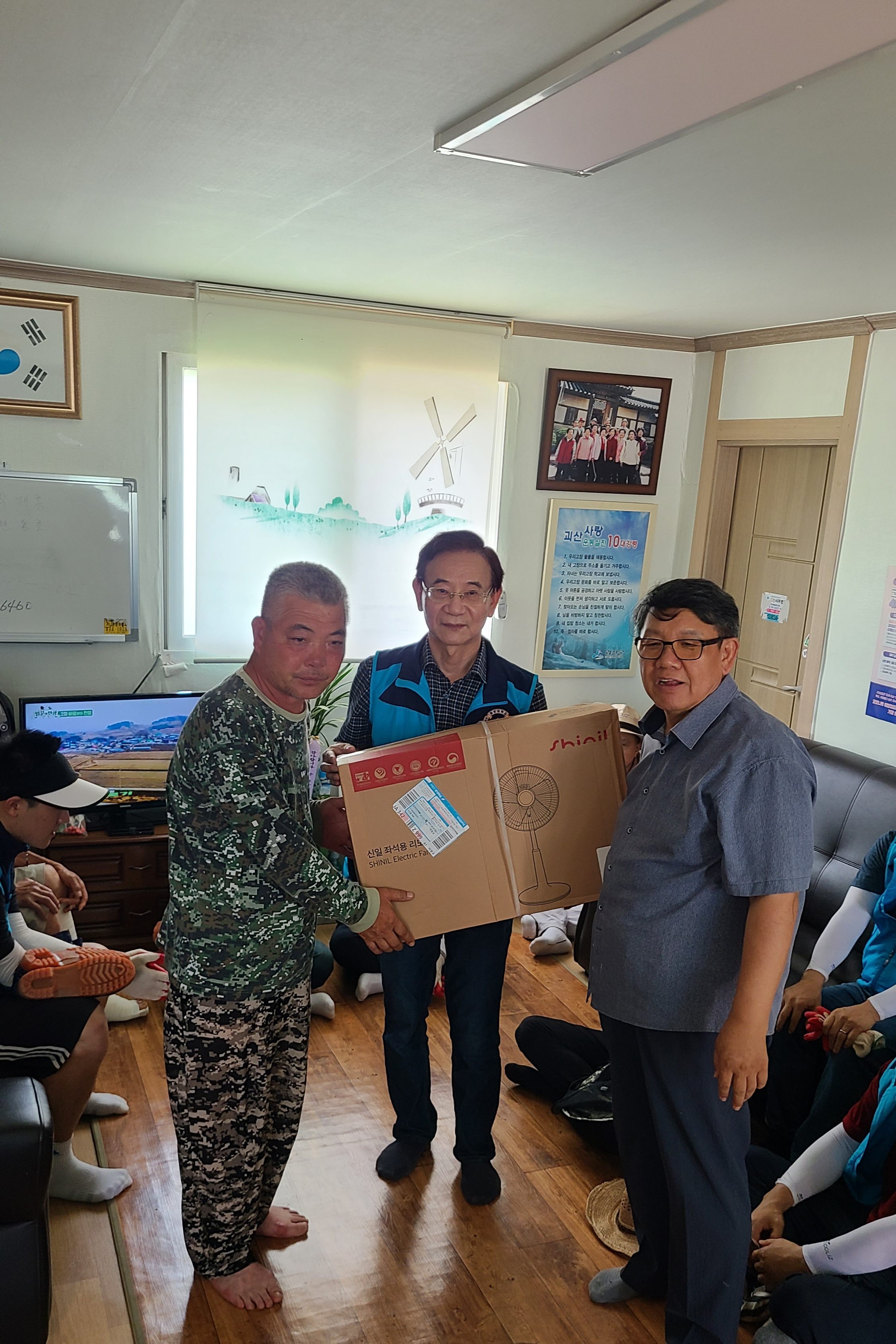 위문품은 금일봉과 선풍기 10대 수건 200장 빵과 쿠키 100 봉을 제공 했다.