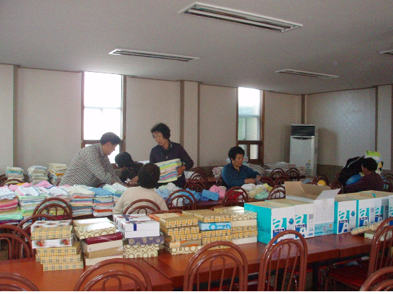 수건이 쓰임 받는 곳은 다양합니다. ⓵ 긴급 재난 지역 ⓶ 독거노인 층