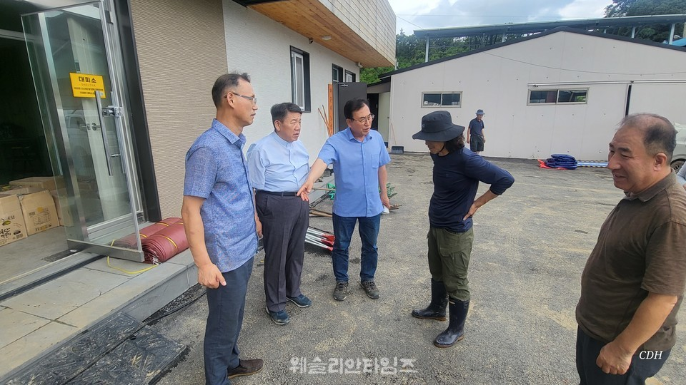 정 목사에 따르면 이담리의 경우에는 완전히 수몰되어 교인 가정과 마을 전체가 피해를 입었다고 밝혔다.교회에도 물이 들어와 현재는 급히 바닥을 청소한 상태이지만, 바닥은 습기가 차 있는 상태이고 교회 밖에 있던 에어콘 실외기와 보일러는 이미 물이 차 사용할 수 없게 되었다. 그리고 교회 밖은 이미 진흙으로 뻘 상태로 변했다. 현재 정 목사 식구와 마을 주민은 오성중학교에서 대피해 생활하고 있는 중이고, 컵라면과 떡으로 끼니를 때우고 있는 중이다