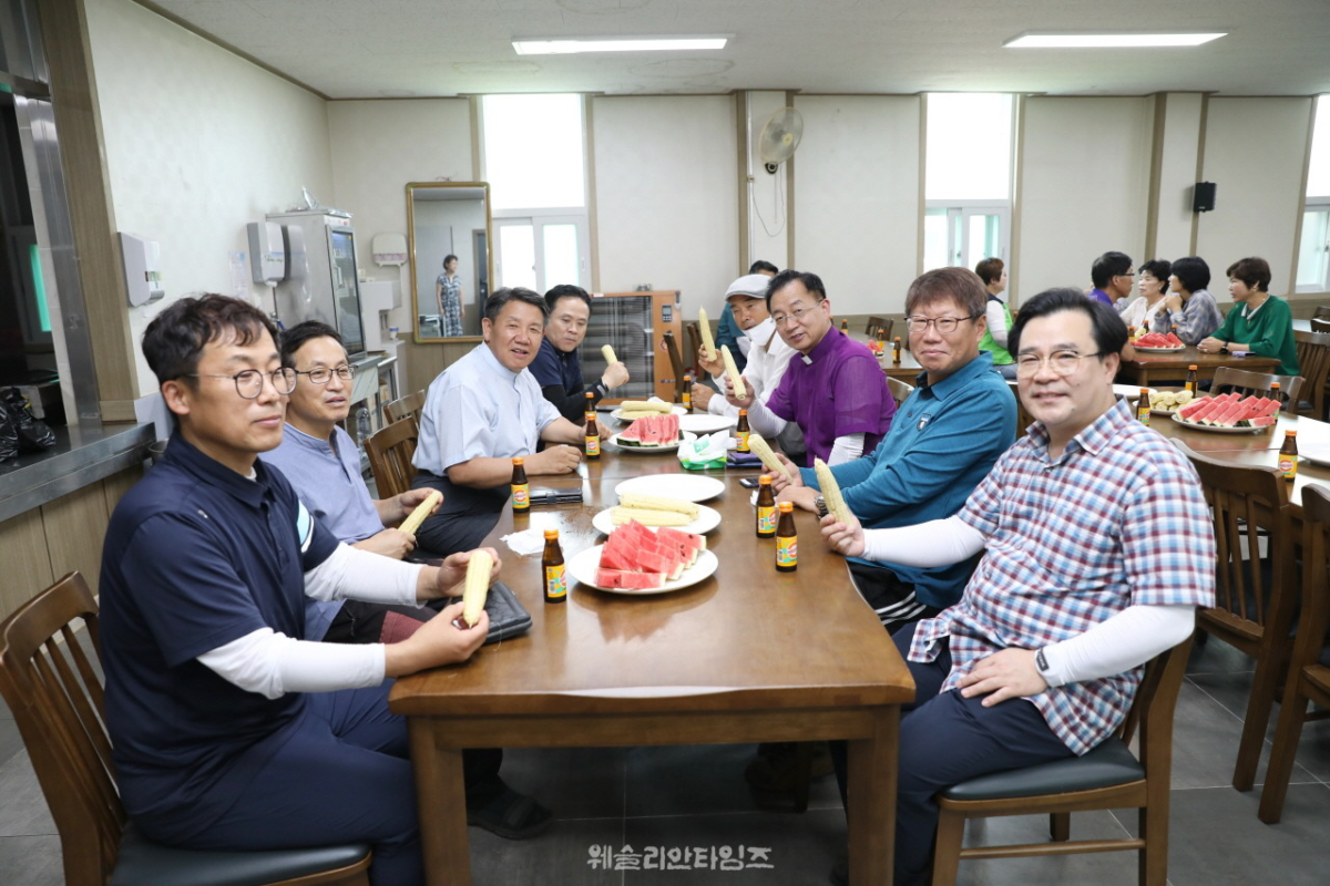 감독님들이 오셔서 격려금을 전달했으며 셋째 날은 괴산중앙교회에서 6백여 장의 수건을 가지고