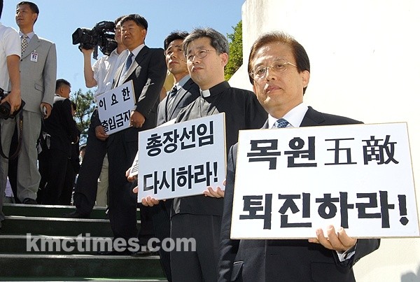 3. 그럼, 그 때 목원대 민주동문회 역할을 해오셨다는 당사자들은 뭐하셨는가? 우리도 치열하게 싸우긴 싸웠고, 그러나 어쩔 수 없었다고 하실 것인가? 그러나 본질은 더러운 거래가 있었다는 것을 누가 부인하겠는가? 순수한 뜻으로 위의 사진처럼 피켓을 들고서 모교를 지켜보기 위해서 헌신적으로 싸웠던 이들과는 다른 동선을 선택하고 합리화시킨 당사자들은 누구인가? 목원대 전직 현직 이사들은 누구인가?