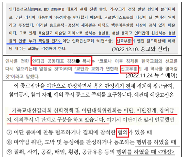 인터콥 = ‘이단적인 요소’ + ‘긍정적인 요소’가 있다.