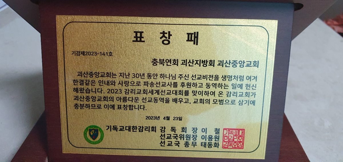 우리 괴산중앙교회가 2023 감리교회 세계 선교대회에서 30년 이상 선교사를 파송한
