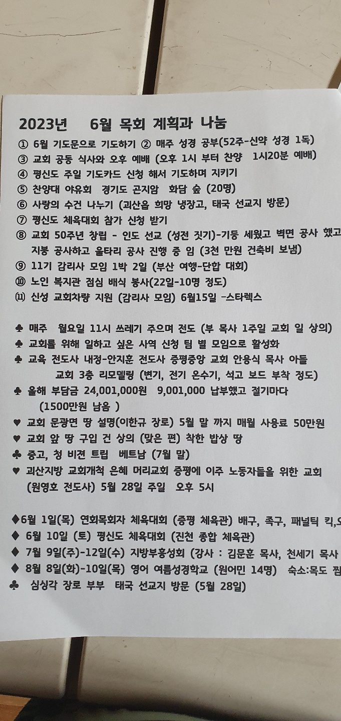 주일에는 목사 장로 6월 목회 계획을 나누었습니다. 매달 교회 사역을 상의하며 교회를 세워 갑니다.