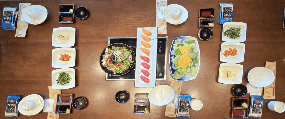 스완에서 복지리에 참치 회 그리고 카페에서 차와 빵을 대접 받았습니다