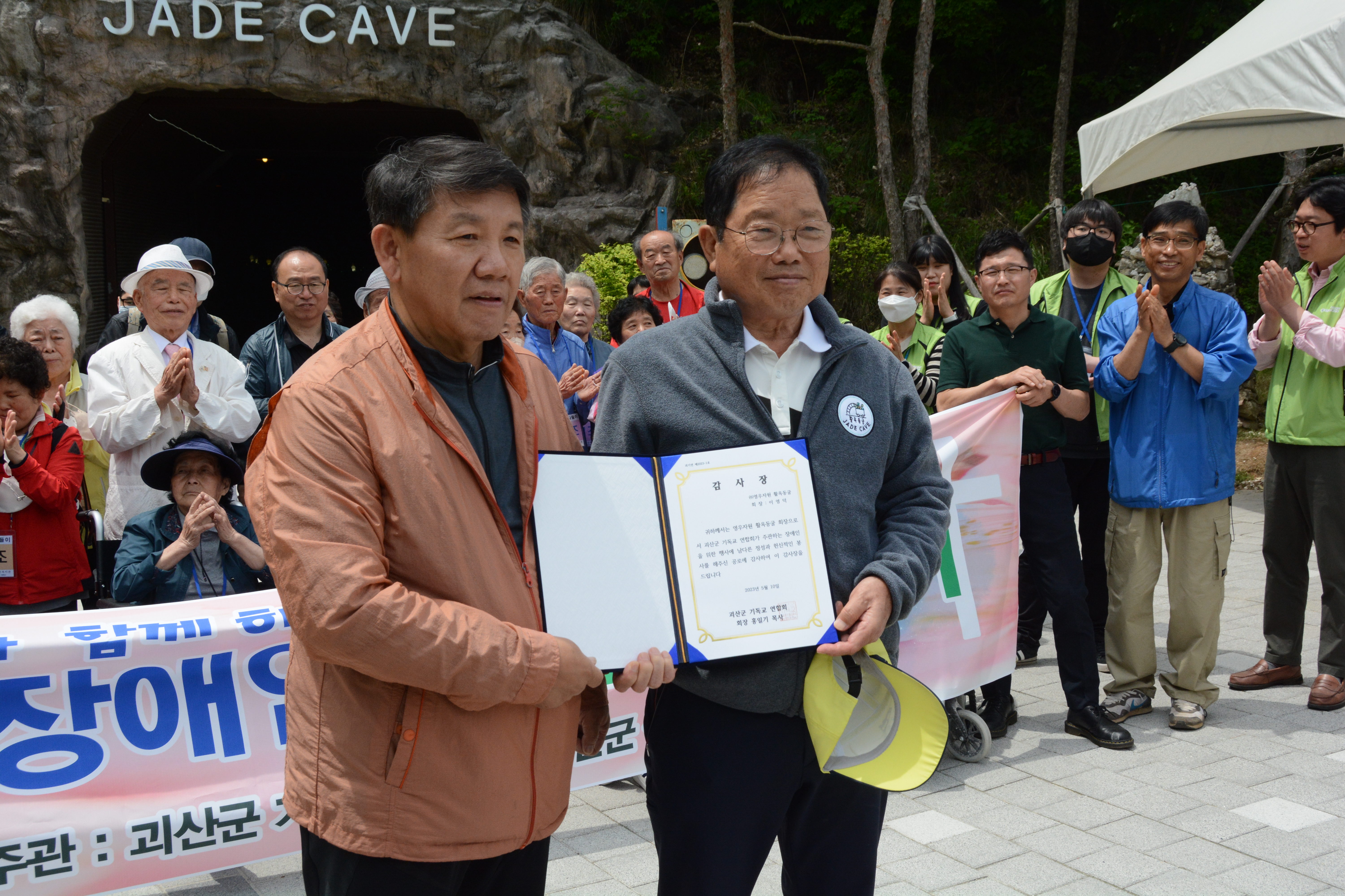 활옥 동굴에 도착해서 회장님을 만나 무료 입장 전에 감사장 전달을 하고 활동 동굴 회장님