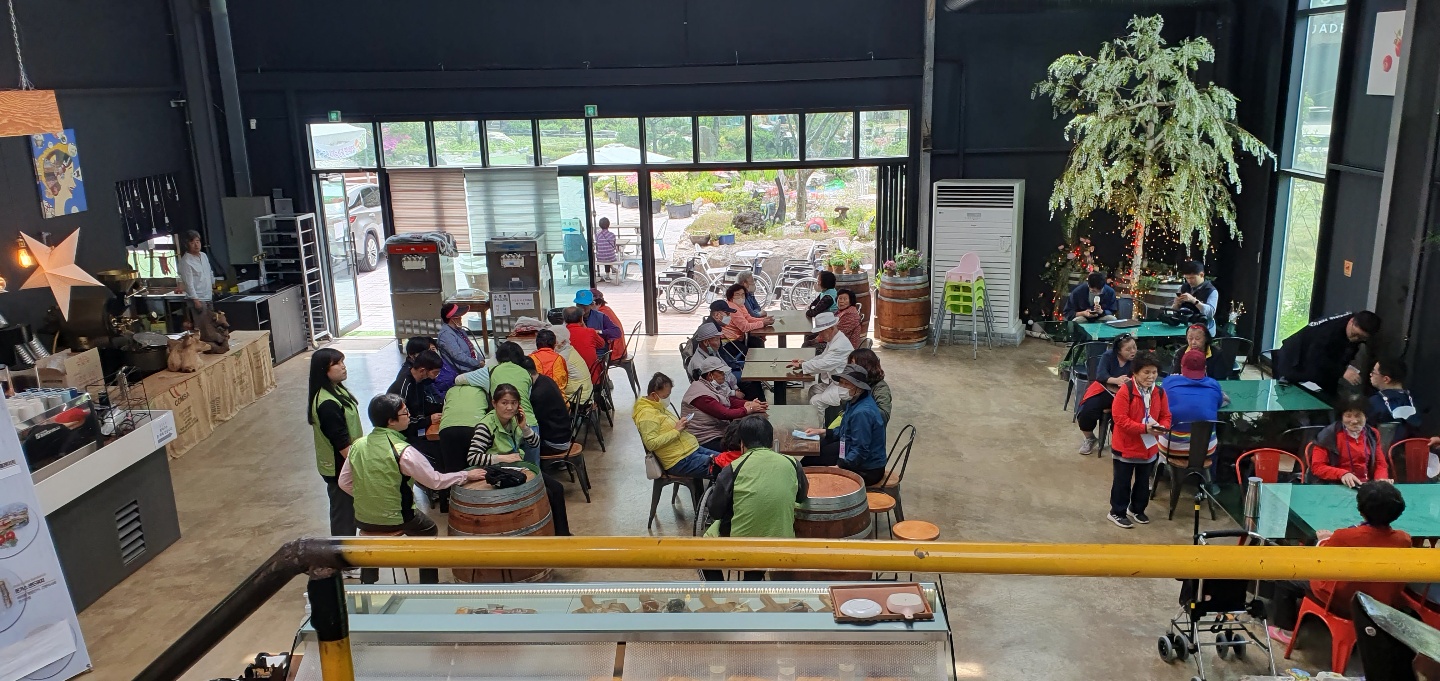 차량 24인승을 비롯 해서 6대로 모시고 충주 고급 채식 뷔페에서 잘 대접 했다.