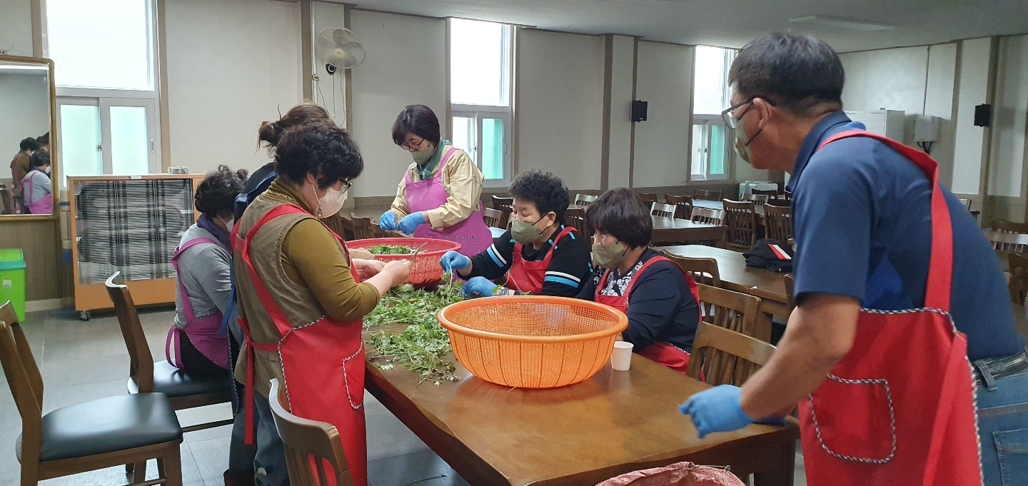 오후 1시 반에 봉사자들이 와서 함께 쑥 다듬기를 했습니다.