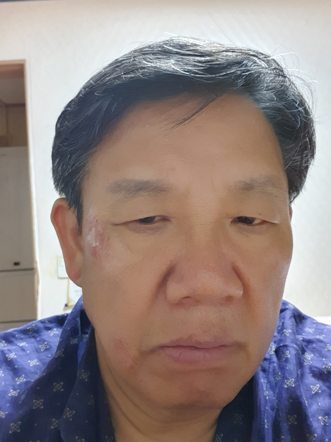 축구 연습 하다가 넘어졌는데 얼굴에 상처가 나서 병원 까지 다녀 왔다.
