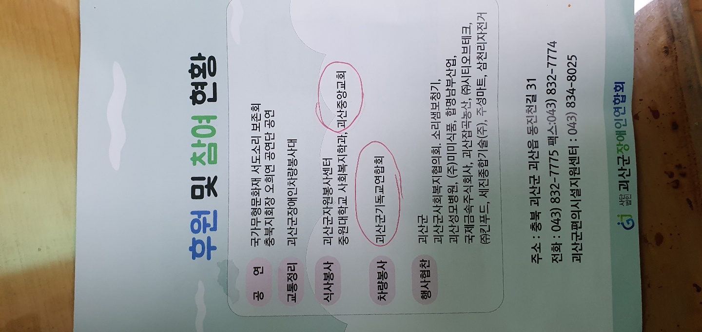 괴산군에 그많은 기관 단체 중에 우리교회와 기독교 연합회만 장학금 지원을 해서 우리
