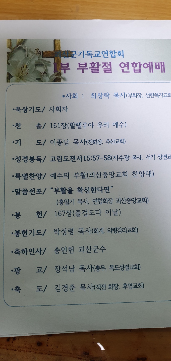 ③ 오후 괴산 기독교 부활절 연합 예배에는 “부활을 확신 한다면”