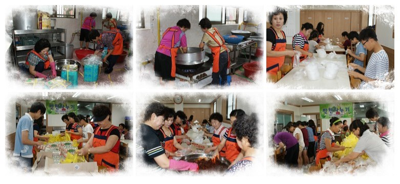 처음에는 괴산군 여성 단체와 교회가 음식을 만들어서 교회가