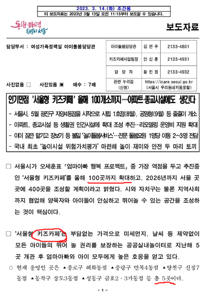 특보, 서울형 키즈카페 서울에 위치한 교회는 서둘러 유치하여 미취학 아동과 학부모를