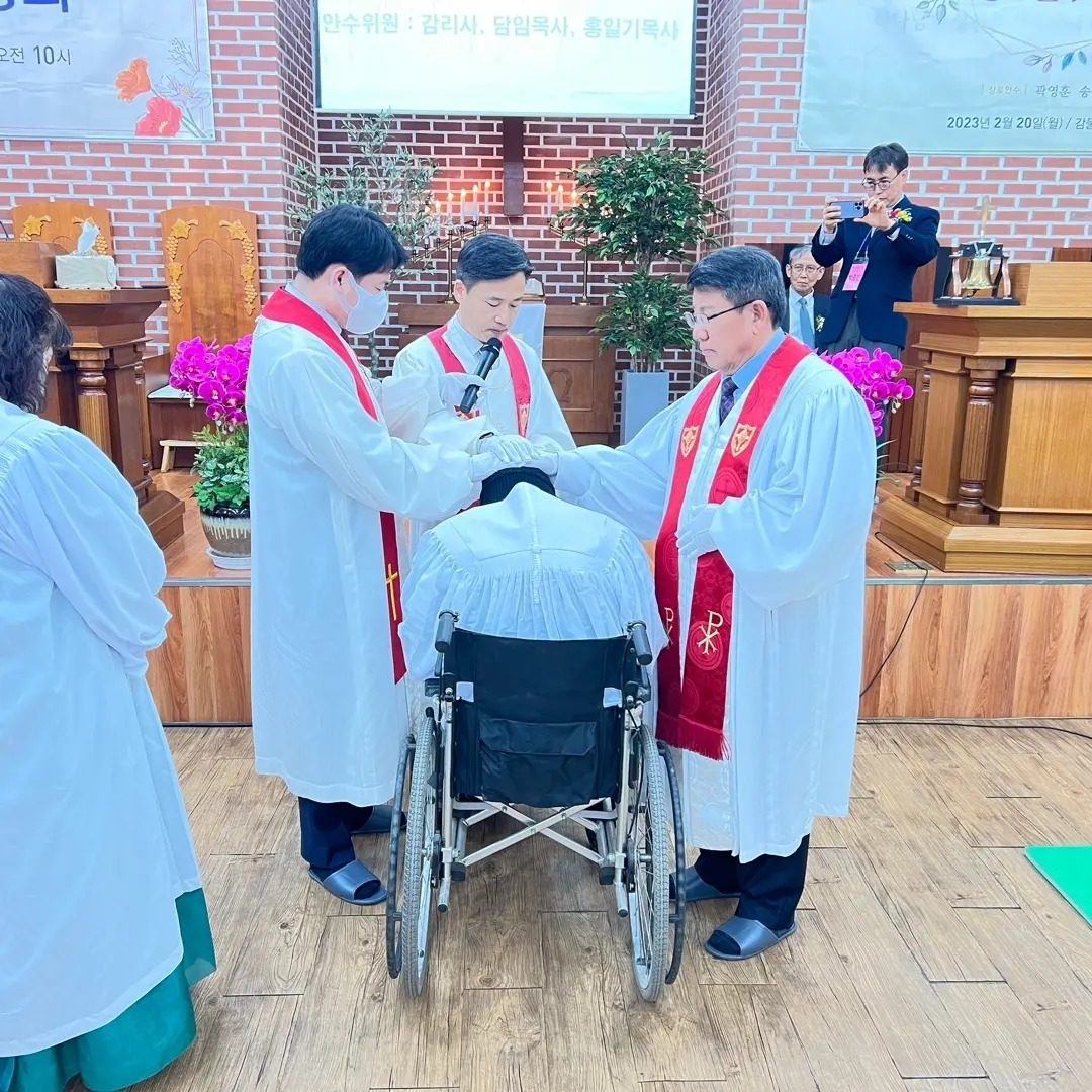 곽영훈 장로님, 송옥분 장로님, 장로님으로 기름 부은 종으로 안수 받으심을