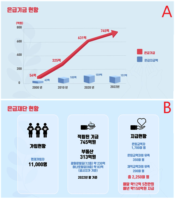 A-3) 2020년 이후 지급액이 감소하였음에도 불구하고, 은급기금의 상승률이 둔화되었다.