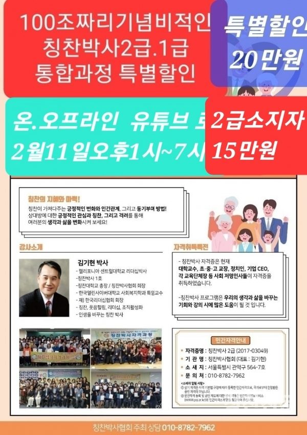 세계최강 칭찬박사 1급자격증과정-왜?대학총장,목사,교장,정치인,CEO지도층이 모여드는가?