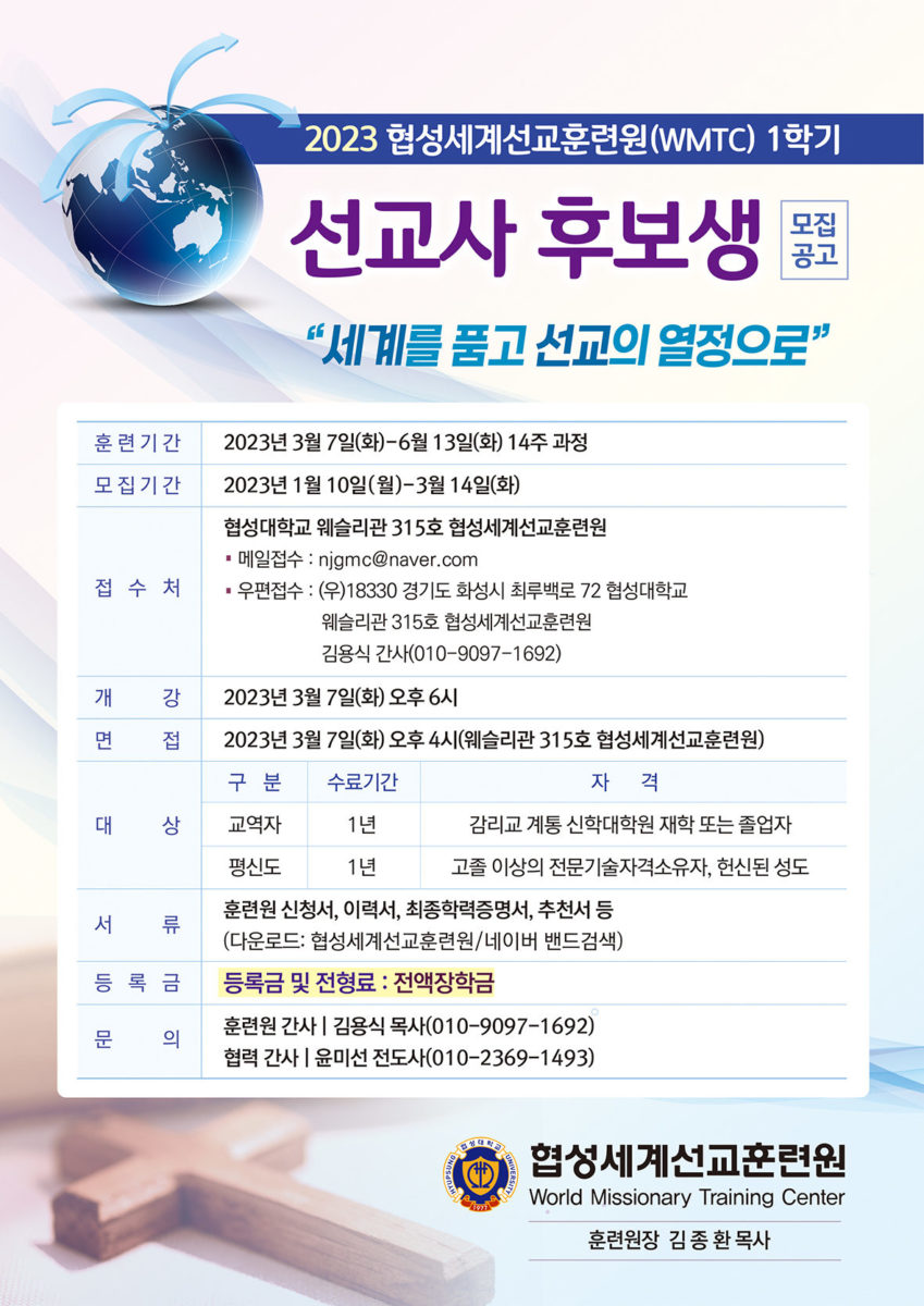 협성세계선교훈련원에서 2023년 1학기 신입생을 모집합니다.