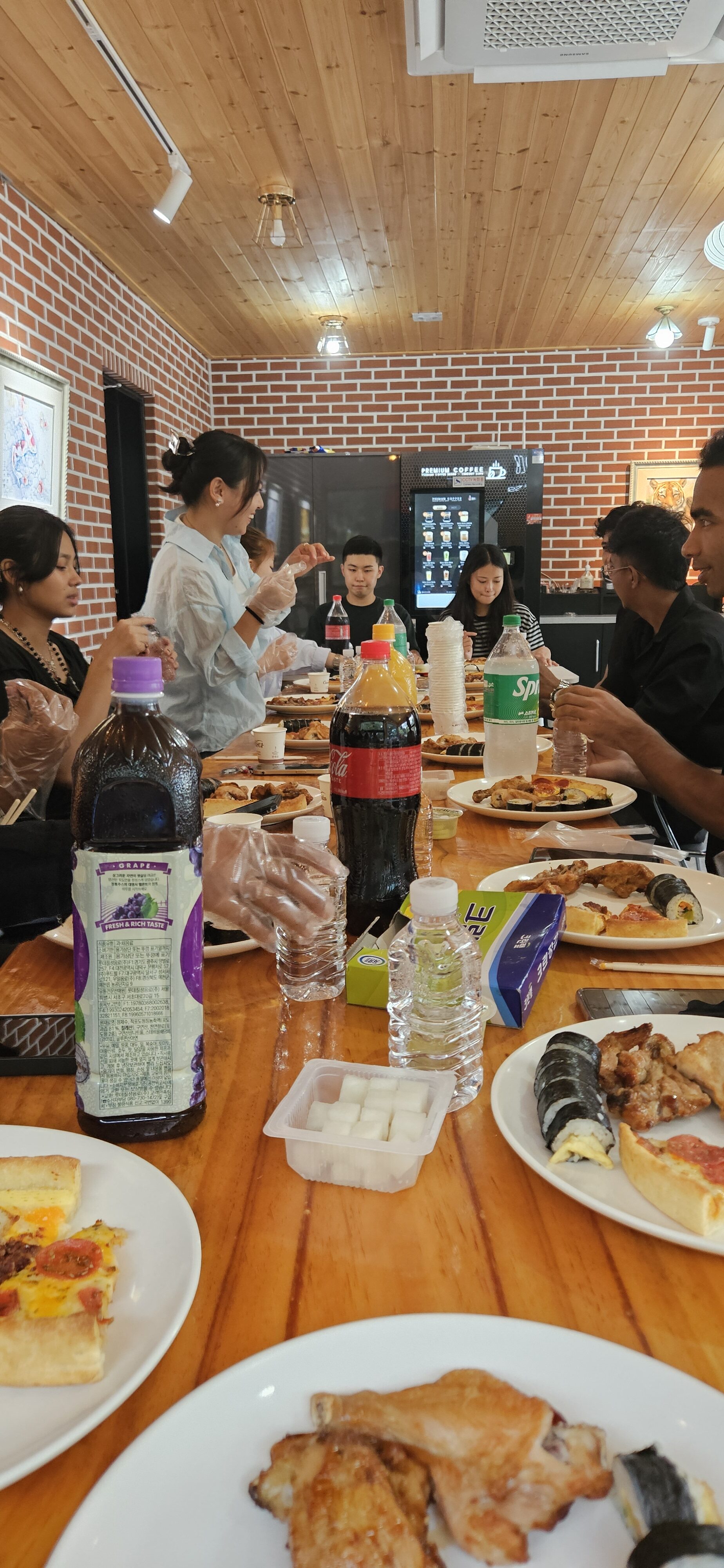 초청을 받아서 갔습니다. 점심으로 치킨, 피자. 김밥, 수박 음료수 등