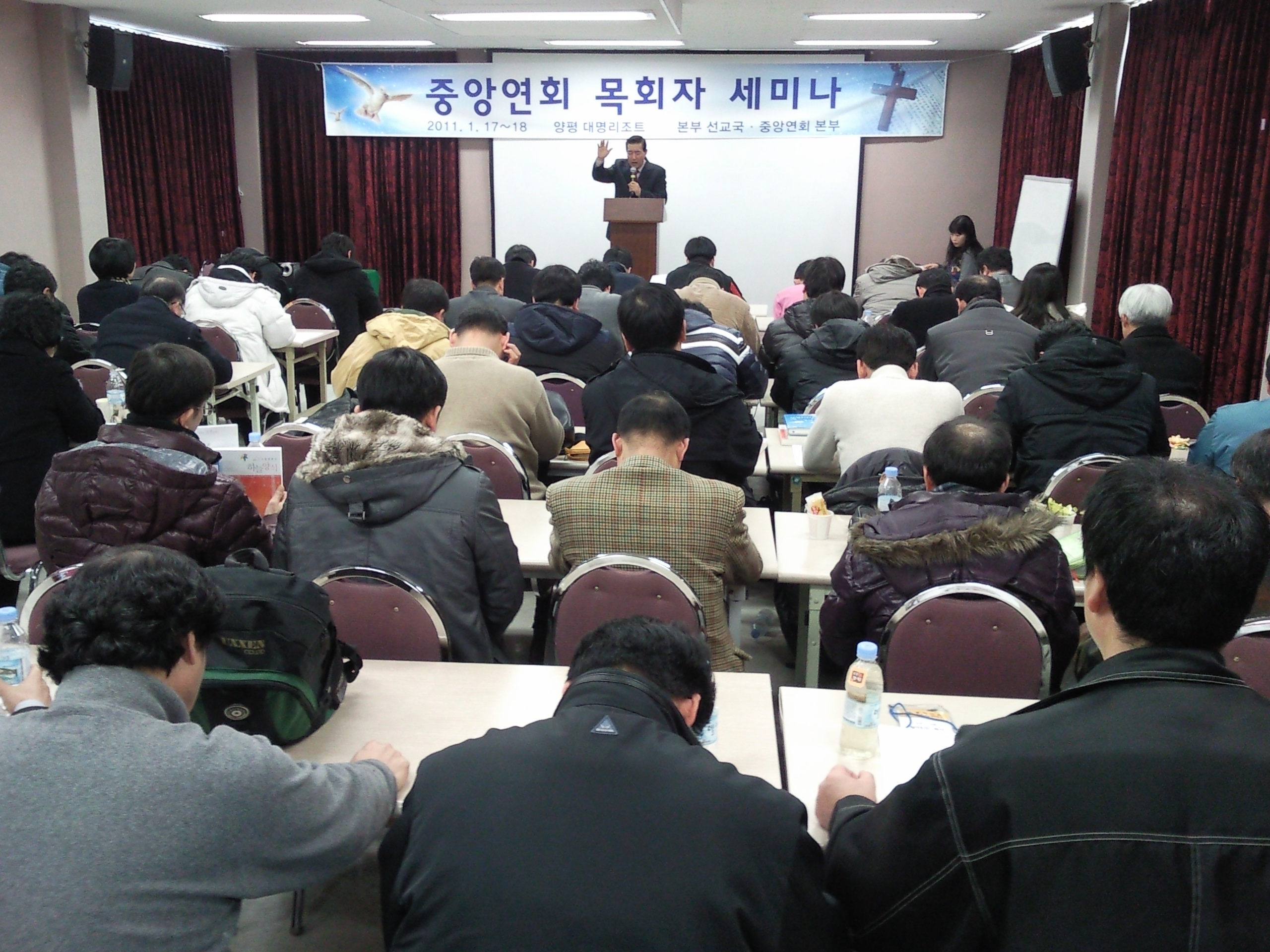 2011년 1월 17일(월)~18일(화) 양일간 양평대명리조트에서 중앙연회 목회자 세미나가 열렸다. 연회 내 비전교회(미자립교회) 목회자들을 초청하여 선교국과 중앙연회에서 공동으로 주관한 본 세미나에서는 전용재 감독을 비롯하여 임문선 목사(영화교회), 이정원 목사(성남제일교회) 그리고 최재화 목사(중앙연회 총무)가 설교하였다. 그리고 선교국의 미자립교회 정책설명(태동화 총무 직무대리)에 이어서 목회비전나누기(최승호 목사), 어린이 도서관을 통한 농촌교회 세우기(이진용 목사) 그리고 작은교회들의 부흥을 위하여(신현식 목사)라는 주제로 실질적인 목회의 도전과 정보를 나누게 되었다