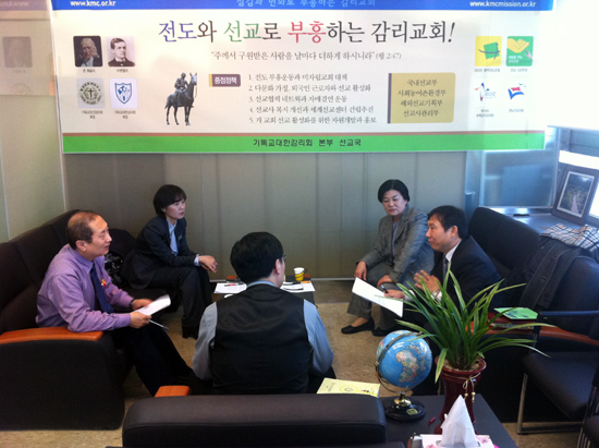 2011년 1월 20일 11시 본부 선교국에서 탈북민 선교 실무자 모임을 가졌다. 태동화 총무 직무대리, 강철호 목사, 김인숙 목사, 길도원 전도사 그리고 계인 목사가 참여하였다. 탈북민 2만명 시대를 맞이하여 보다 더 효율적인 탈북민 선교를 위한 토의에서 정책적으로 ‘탈북민 선교회’를 발족하여 하나센터나 탈북민 청소년들을 위한 센터 등과 같은 체계적인 접근이 필요하다는 제안이 있었다. 첨부파일 IMG_0739.jpg